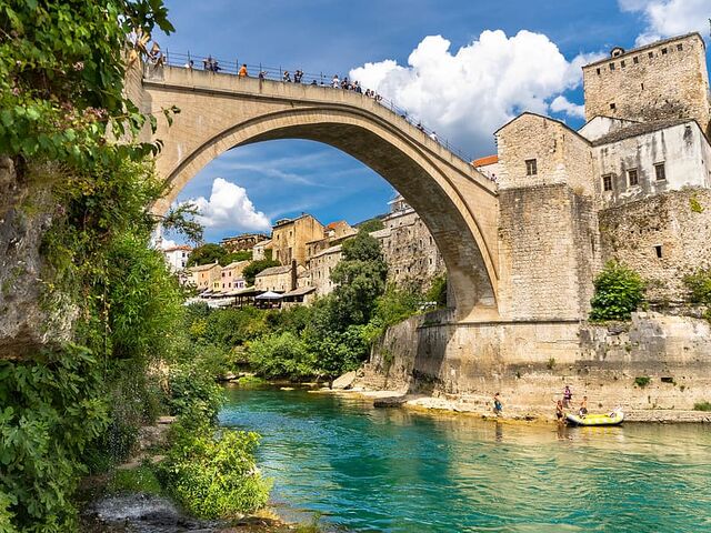 Sabah odaların boşaltılması ve erken kahvaltının ardından Balkanların en önemli simgelerinden Mostar Köprüsü’nün yer aldığı Mostar’a doğru yola çıkıyoruz. Mostar'a varışımızla birlikte aracımızdan inip; dar taş sokakları, geleneksel Bosna evleri ve çeşitli dükkanları ile ünlü Mostar Eski Köprüsü Bölgesi'ne doğru yürüyoruz. Burada göreceğimiz en önemli eser Mostar Köprüsü olacak. Mostar Köprüsü, Osmanlı İmparatorluğu döneminde 16. yüzyılın ortalarında Mimar Sinan'ın öğrencisi Mimar Hayreddin tarafından inşa edilen köprü, tipik Osmanlı mimarisi örneklerinden biridir. Kesme taş kullanılarak inşa edilen köprü dönemin estetik ve mühendislik başarılarını yansıtmaktadır. Bosna Savaşı sırasında, 1993 yılında Mostar Köprüsü Hırvat topçuları tarafından yıkıldı. Bu olay, köprünün sembolik değerini ve kültürel önemini vurgulayan bir trajedi haline geldi. Ancak uluslararası toplumun desteğiyle, köprü 2004 yılında orijinal planlarına sadık kalarak yeniden inşa edildi. Mostar turumuzda göreceğimiz bir diğer önemli eser de Koski Mehmet Paşa Camii'dir. Cami, 1617-1618 yılları arasında Osmanlı veziri ve Bosna Valisi Köprülü Mehmed Paşa'nın torunu Koçi Bey tarafından yaptırılmıştır. Caminin adı, yaptıranın adından gelmektedir. Tipik Osmanlı mimarisinin etkileyici bir örneği olan tek kubbeli yapıdır. Kesme taş kullanılarak inşa edilmiş olan cami, zarif süslemeler ve Osmanlı mimarisine özgü detaylar içerir. Bosna Savaşı sırasında zarar gören cami, uluslararası destek ve çabalarla restore edilmiştir. Mostar'da verilecek kısa serbest zamanın ardından başkent Saraybosna'ya doğru yola çıkıyoruz. Varışın ardından otelimize transfer. Akşam dileyen misafirlerimiz rehberimiz tarafından ekstra olarak düzenlenecek Otantik Yerel Restoranda Gerçek Boşnak Gecesi programımıza katılabilirler. Saraybosna’nın köylerinden birinde yer alan yerel bir restoranda sevdalinkalardan örnekler sunacak müzik grubu ve geleneksel Boşnak halk danslarını sergileyecek ekibin dönüşümlü olarak sahne alacağı gecede Boşnak ve Balkan mutfağının en güzel lezzetlerinden oluşan son derece zengin bir menünün tadına bakacağız. Unutulmaz bir Boşnak Gecesi’nin sonunda otelimize dönüş yapacağız. Geceleme otelimizde.